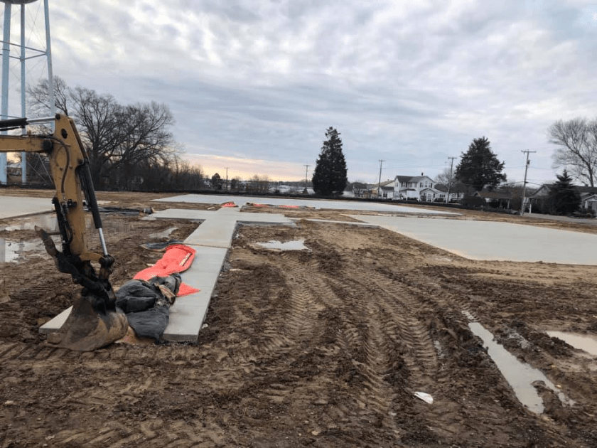 Steve Swope reported on February 15, 2019, “Our #RecPark has all concrete slabs poured, the builder is now down to waiting on the grounds to dry up in order to finish up the grading, landscaping and fencing!”