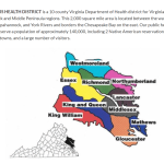 THREE RIVERS HEALTH DISTRICT is a 10 county Virginia Department of Health district for Virginia’s beautiful Northern Neck and Middle Peninsula regions. This 2,000 square mile area is located between the waters of the Potomac, Rappahannock, and York Rivers and borders the Chesapeake Bay on the east. Our public health professionals serve a population of approximately 140,000, including 2 Native American reservations, 9 incorporated towns, and a large number of visitors.