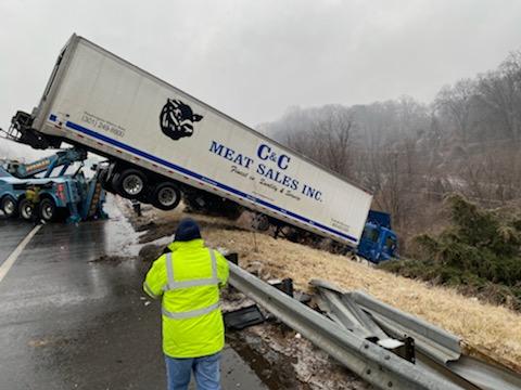 No injuries in the I-495 eastbound crash, which involved the tractor-trailer and two other vehicles and occurred at 1:52 p.m.