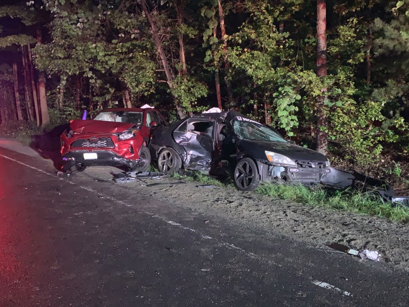 As it traveled across the lanes, the Honda was struck by an oncoming Toyota sedan and Ford SUV.