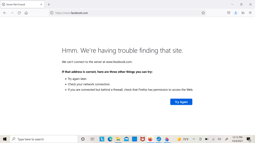 NOT only is facebook down but Instagram, What’s App and all other sites owned by facebook are down right now. The company said they were working on the problem but denies any cyber attack as the cause.
