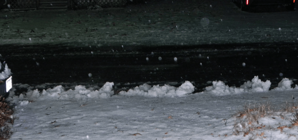 Plows are making their way through the numbered street in Colonial Beach as the storm changes from snow to rain.