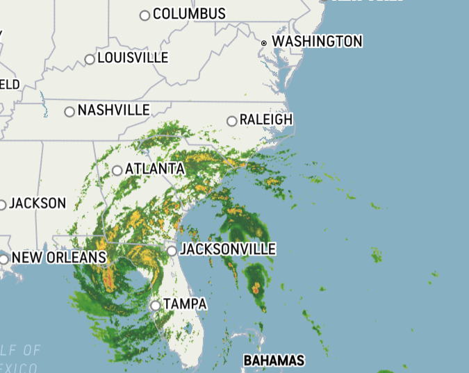 It’s due to the atmospheric conditions. Nichole will be bringing showers. Her outer bands will create pop-up storms that could in turn create severe weather with heavy rains, gusty winds and possible tornadoes. Nichole is also bringing a cold front with her and temperatures will be high in our area when the front comes through. This will also bring a chance of severe weather.