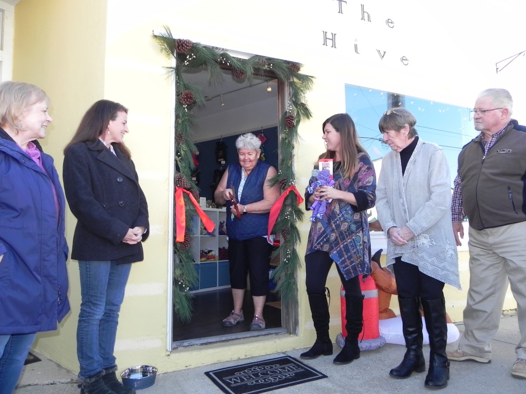 The second ribbon cutting ceremony took place at 116 Hawthorne where Caryn Self Sullivan has opened a pet shop “Beach Paws Boutique” with various pet supplies and if you’re lucky some free advice on training your dogs. Dr. Sullivan has been helping residents train dogs here in Colonial Beach for many years now. But she wanted to settle into a permanent building in the downtown area where she could offer supplies. The shop will be open everyday from now until Christmas.