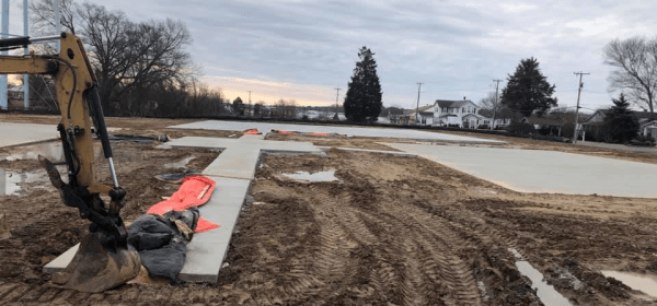 By Linda Farneth The sidewalks and slabs are poured but the mud persists. While the contractor waits for the ground to dry out Steve Swope