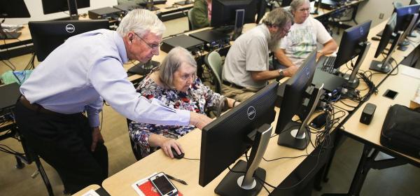 Photo Caption: Martin Bailey works with students in the computer lab. RCC RILL Course Boosts Computer Skills and Confidence The Rappahannock Institute for Lifelong Learning